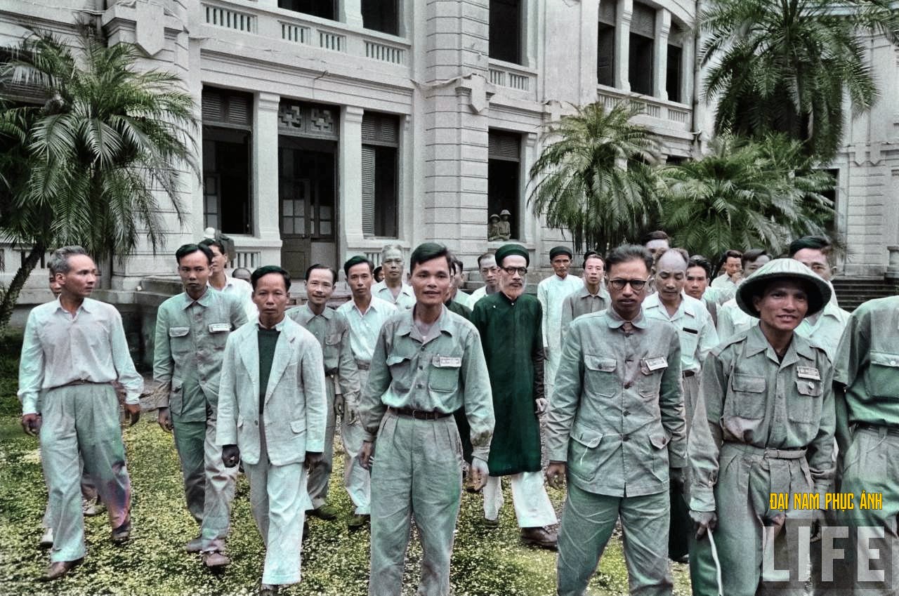 Cán bộ Việt Minh tiếp quản Nha Giám đốc Bưu Điện Bắc Việt.
