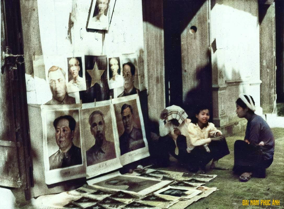 Bán ảnh các lãnh tụ Cộng sản trên đường phố Hà Nội ngày 11/10/1954.