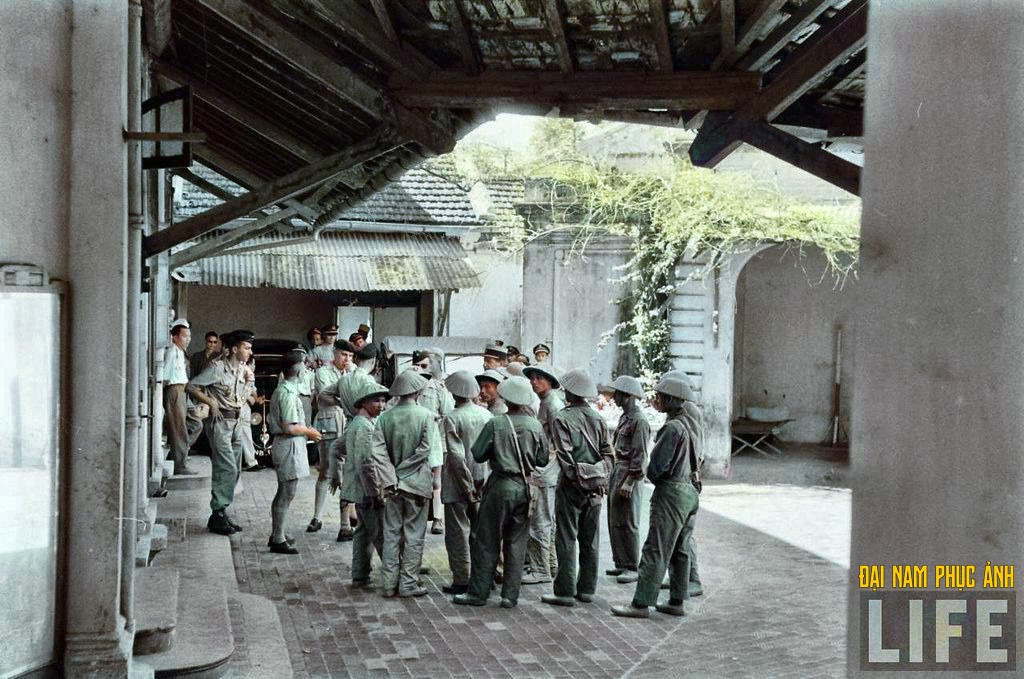 Binh sĩ hai bên tập trung tại chân cầu Paul Doumer (cầu Long Biên) trong thời điểm chuyển giao quyền lực.
