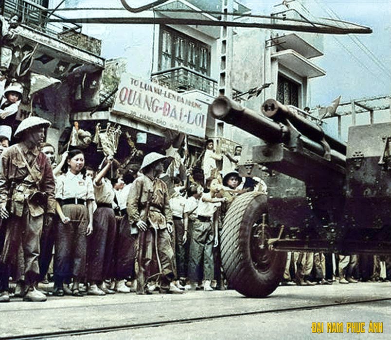 Từ cầu Long Biên, từng đoàn quân giải phóng tiến về Thủ đô.