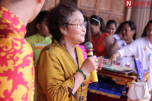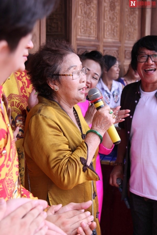 | Mẹ Hoài Linh trổ tài ca hát trong buổi lễ giỗ tổ ngành sân khấu. |