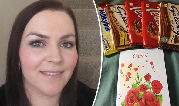 Lisa và bức ảnh tấm thiệp cùng socola cô đăng tải trên Facebook trước khi tự tử. Ảnh: Express |