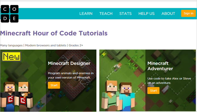 Phiên bản Minecraft Hour of Code Designer chạy trên nền tảng web tại địa chỉ http://code.org/minecraft, giúp người mới lập trình tạo và chia sẻ các game MineCraft đơn giản, với mục tiêu truyền cảm hứng cho hàng triệu học sinh thử lập trình lần đầu và tiếp tục yêu thích môn khoa học máy tính. Trong lần ra mắt này, bản Tutorial có 10 ngôn ngữ và dự kiến sẽ sẵn sàng với 50 thứ tiếng vào ngày 5/12/2016.