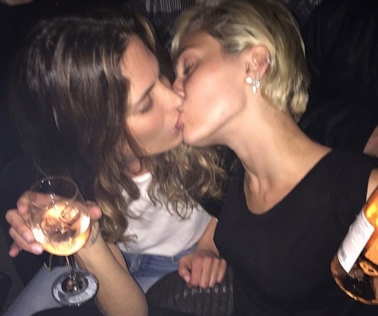 Miley Cyrus hôn bạn đồng giới. |