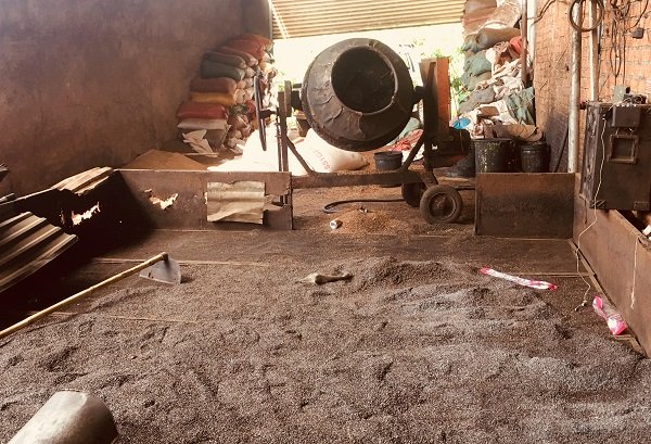 Cà phê được trộn bằng bồn trộn bê tông và đổ xuống đất. Ảnh: Vietnamnet |
