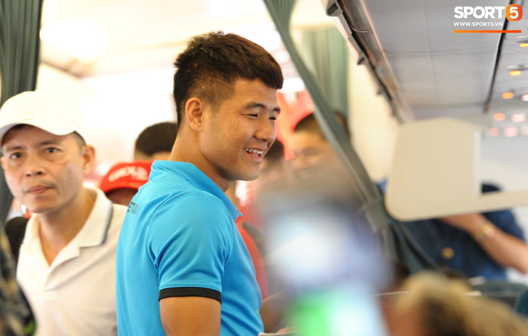 | Ở chuyến bay chở đội về từ ASIAD 2018, các cầu thủ cũng nhận được một tấm huy chương màu vàng và ngôi sao đỏ. |