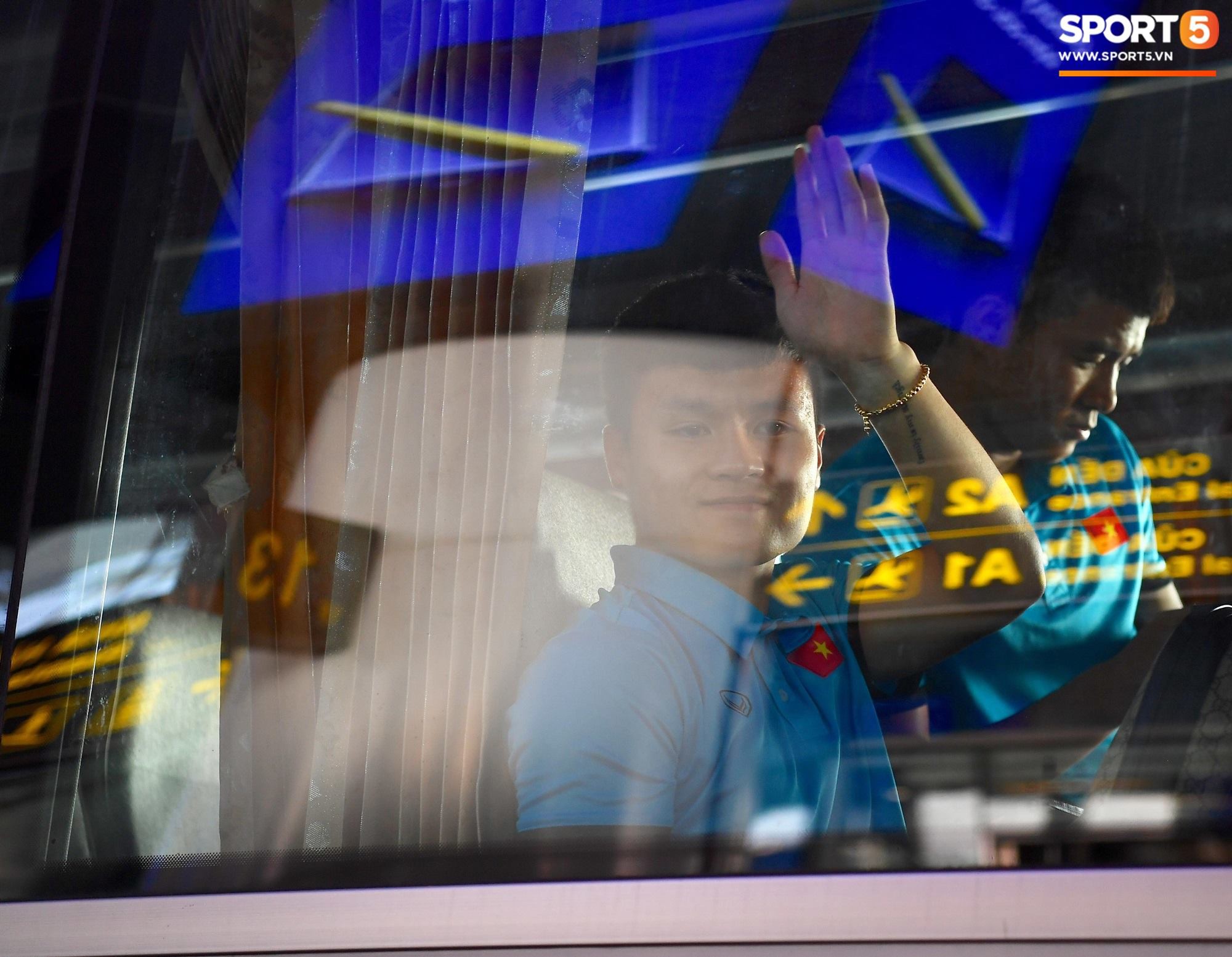 | Quang Hải chào tạm biệt người hâm mộ khi ngồi trên xe để trở về khách sạn nghỉ sau hành trình hơn 3 tiếng đồng hồ từ Bacolod về thủ đô Hà Nội. Ảnh: Hiếu Lương |