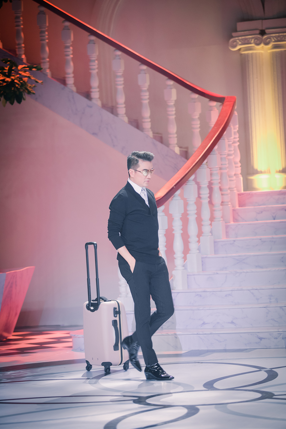 Tham gia rất nhiều chương trình truyền hình, thế nhưng lần này Mr.Đàm mang cảm giác khác lạ. Anh rất bất ngờ khi kéo vali bước vào sân khấu được thiết kế tinh tế, hoành tráng là khách sạn 5 sao đẳng cấp.