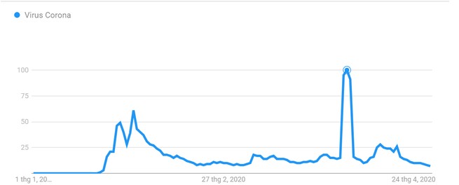 Tuy nhiên sang đến ngày 23/1, thời điểm ca dương tính với Covid-19 đầu tiên trở về từ Vũ Hán, số lượt tìm kiếm từ khóa này tăng đột biến. Chu kì tăng liên tục đến ngày 28/1, giảm vào ngày 29/1 và lại tăng đột biến vào ngày 31/1.