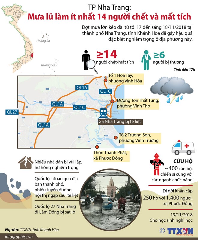 Đợt mưa lớn kéo dài từ tối 17 đến sáng 18/11 tại thành phố Nha Trang, tỉnh Khánh Hòa đã gây hậu quả đặc biệt nghiêm trọng ở địa phương này.
