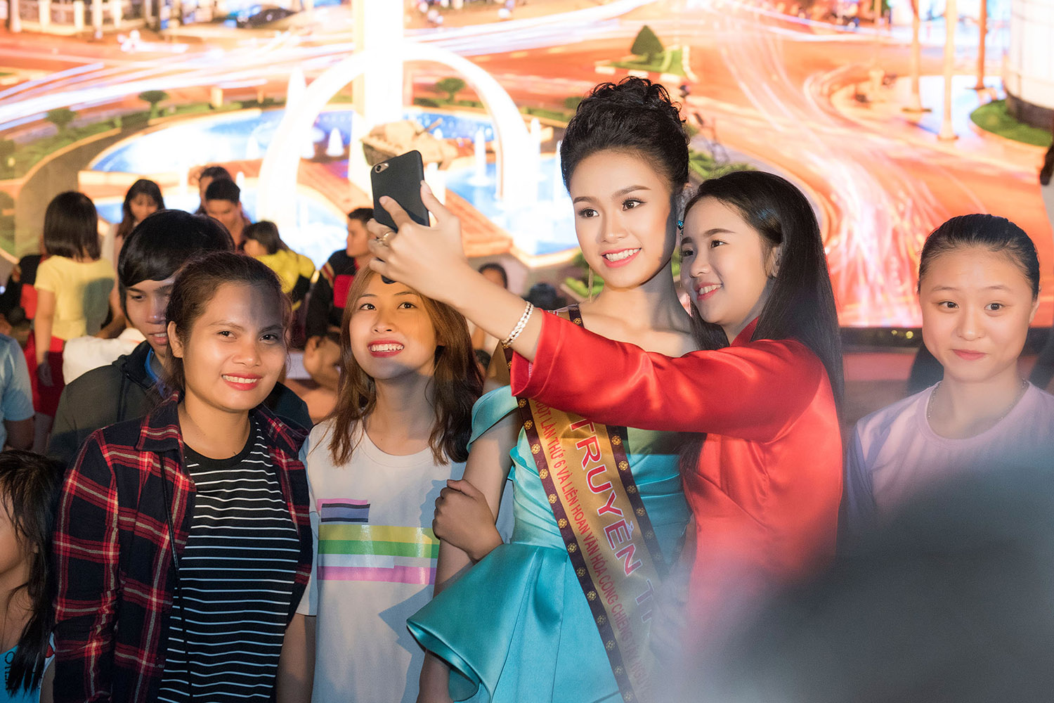 | Sau chương trình, không ít người đã nán lại để chụp ảnh lưu niệm cùng "cô gái vàng" của hoa hậu Việt Nam. |