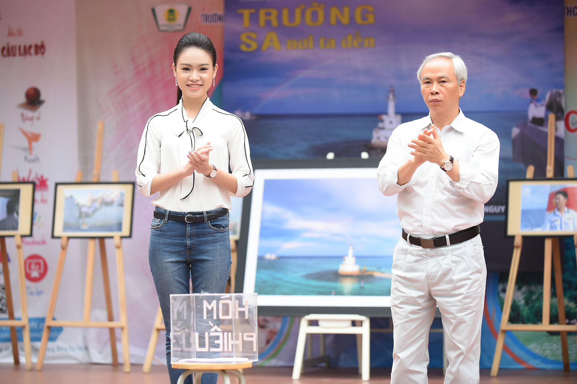 | Ngọc Vân cho biết cô rất vui mừng vì có cơ hội được trở lại trường cũ và truyền tới các em học sinh không chỉ là những xúc cảm thiêng liêng đối với biển đảo mà còn khơi dậy trong các em một hành động đẹp, đó là cùng chung tay hỗ trợ cho cuộc sống của các chiến sỹ nơi đảo xa. |
