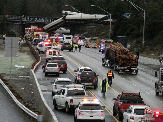 Theo tin tức đăng tải trên Người Lao Động, Tiền Phong và An ninh Thủ đô dẫn lời hãng tin AP cho hay, một đoàn tàu cao tốc chở khách của hãng Amtrak đã trật đường ray trên cầu vượt khiến một số toa tàu lao xuống đường cao tốc bên dưới trong giờ cao điểm gần Dupont - Washington hôm 18-12 gây thương vong lớn.