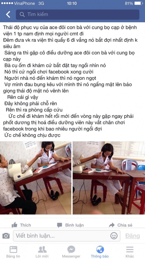 Đã có quyết định điều chuyển công tác đối với nữ điều dưỡng “bận” lướt Facebook, không quan tâm đến bệnh nhân.