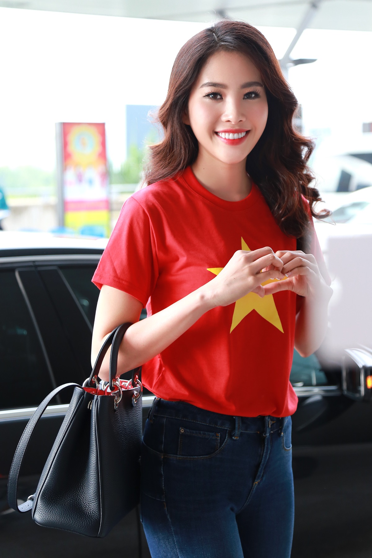 | Đại diện Việt Nam tham gia Miss Earth 2016 trẻ trung và khỏe khoắn trong bộ trang phục đơn giản áo quốc kỳ Việt Nam và quần dài thoải mái. |