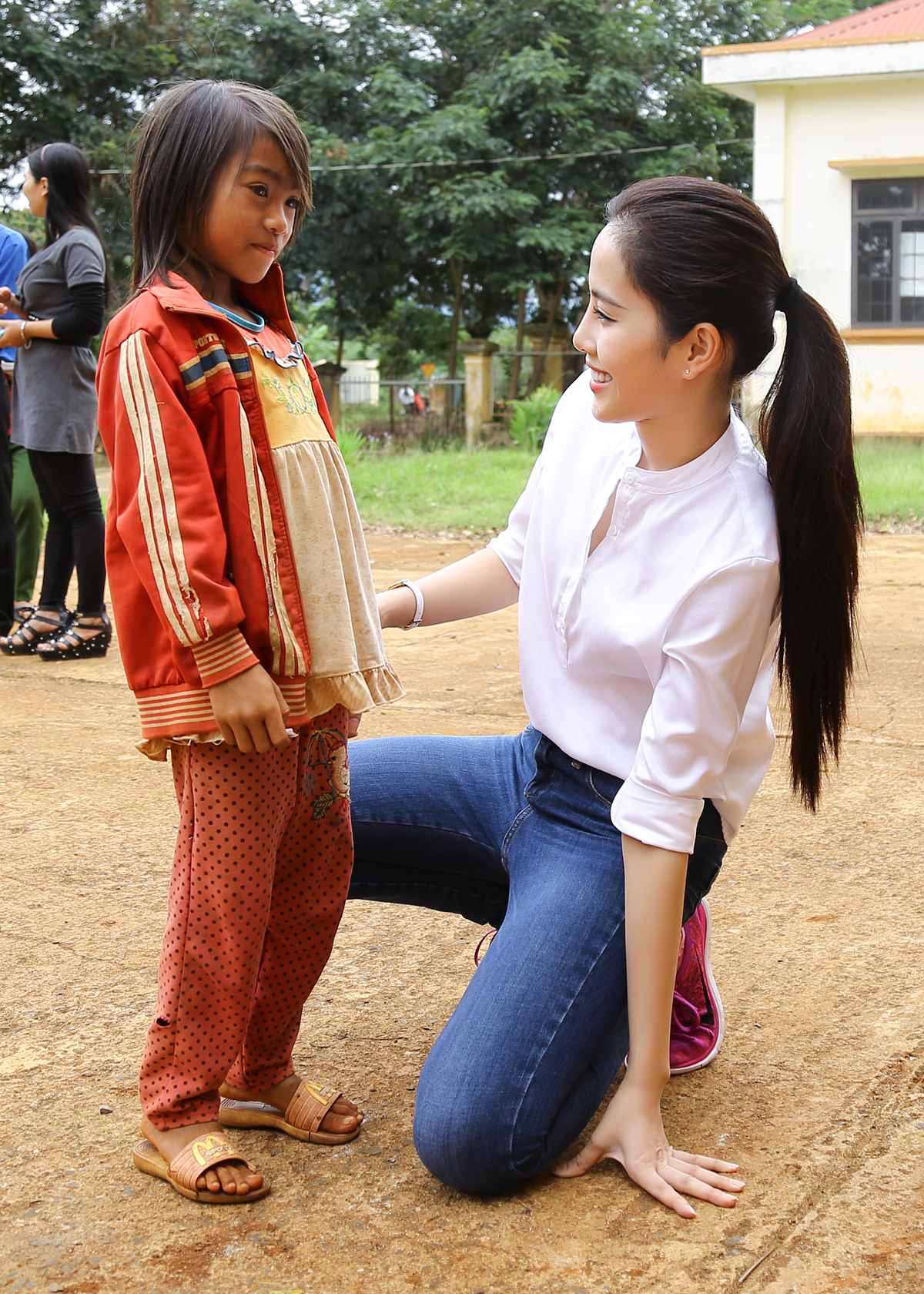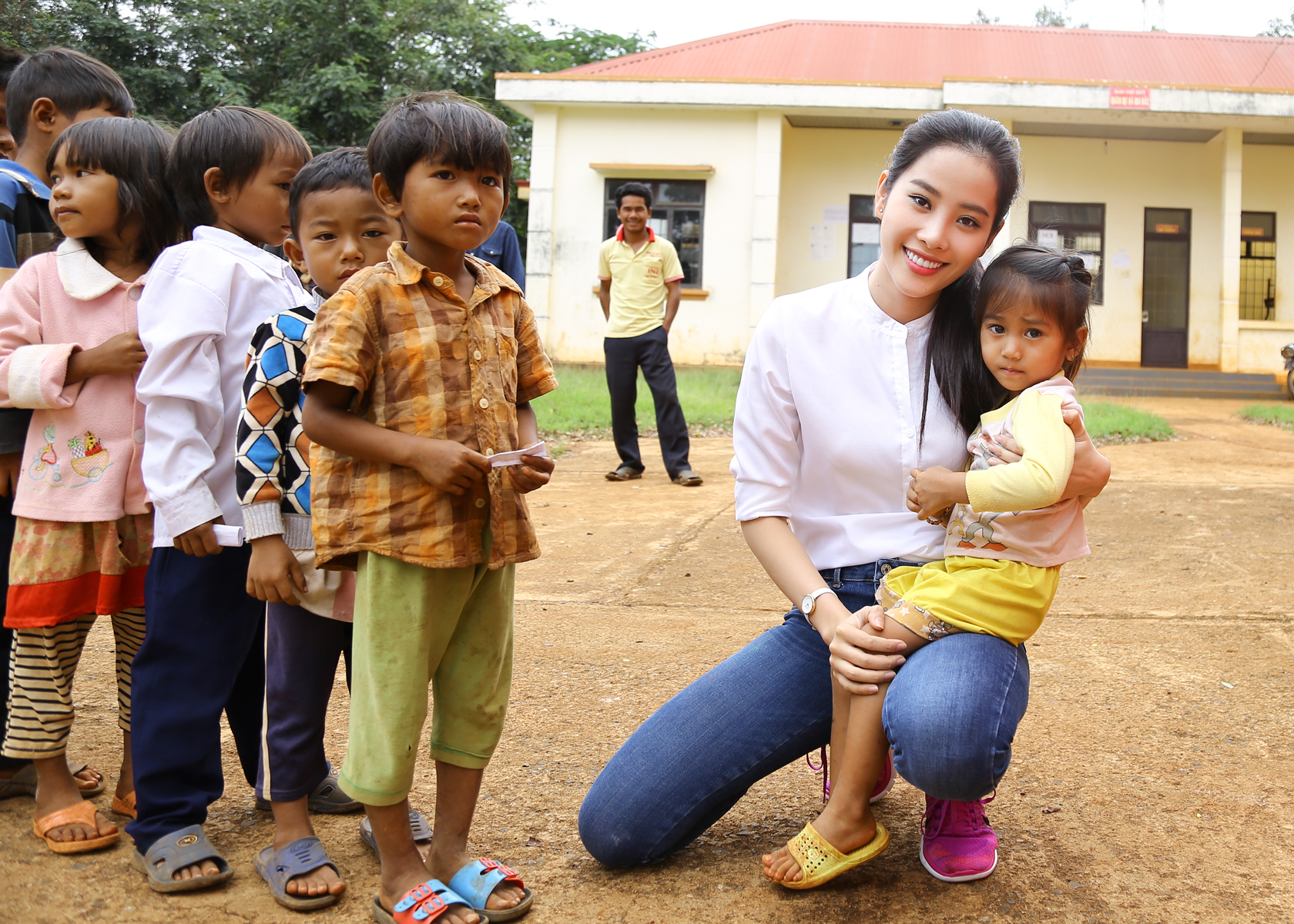 Hôm qua (11/9) Hoa khôi đồng bằng Sông Cửu Long không quản ngại đường xá xa xôi, ngồi trên ô tô 6 tiếng đồng hồ từ TP.HCM lên xã Gia Bắc, huyện Di Linh, tỉnh Lâm Đồng để thăm hỏi và quà cho trẻ em nghèo dân tộc K’Ho dịp trung thu.
