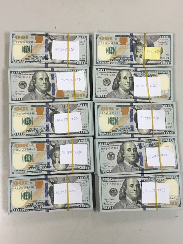 Hành khách T.K và số ngoại tệ được cất giấu khi làm thủ tục xuất cảnh. (Ảnh: Sài Gòn Giải Phóng) |