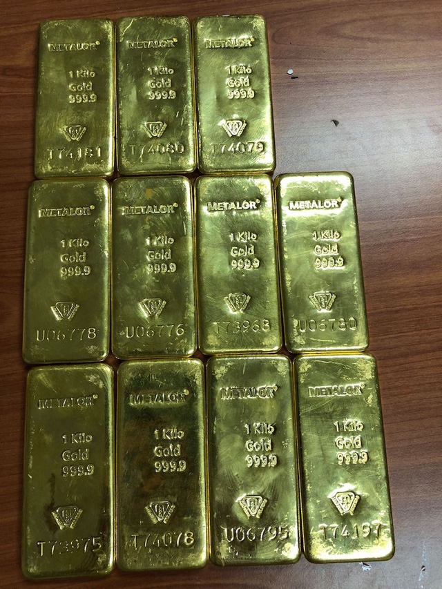 11 thỏi vàng bị tạm giữ. (Ảnh: Dân Trí) |