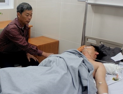Thầy giáo được đưa vào bệnh viện cấp cứu với vết dao đâm ở hạ sườn phải, kích thước 2x2cm, gây tổn thương gan, phải phẫu thuật.