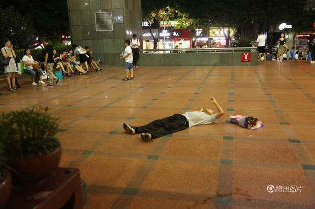 Được biết, anh chàng này hiện làm thuê trong một công ty môi giới bất động sản ở Quảng Châu với mức lương 3.000 tệ (tương đương 10 triệu đồng)/tháng nhưng vẫn bị từ chối. Sau khi cô gái bỏ đi, chàng trai đã nằm lăn ra nền đất khóc tu tu.