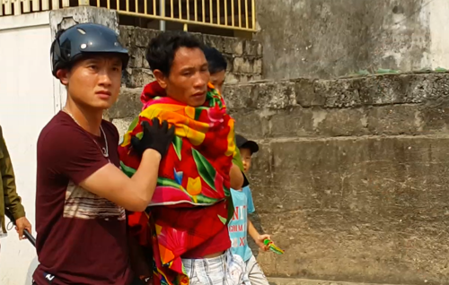 Trong lúc anh Sơn ghé mồm hút thuốc lào, anh Điệp lao vào hất chiếc kéo văng khỏi tay Sơn, đè anh Sơn xuống đất. Anh Quảng bị Sơn rạch một nhát dao sượt vào cổ nhưng cố bỏ chạy, được một đoạn thì ngất xỉu và được người thân đưa đi cấp cứu.