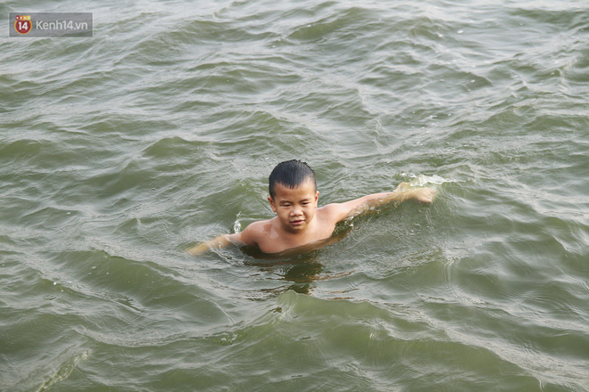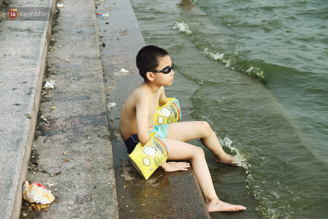 "Bãi tắm" ở Hồ Tây đông nhất từ 16 đến 18h mỗi ngày, tập trung chủ yếu quanh khu vực đường Quảng An, Quảng Khánh, Quảng Bá. Không chỉ có thanh niên, mà cả những người cao tuổi, phụ nữ, trẻ em cũng đi tắm khiến cho khung cảnh nơi đây khá nhộn nhịp.