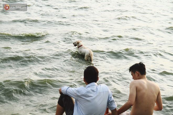 Những ngày nắng gắt đầu hè, nhiều người dân Thủ đô thích thú bế chó cưng ra Hồ Tây (quận Tây Hồ) cùng vui chơi và tắm giải nhiệt dù tấm biển cấm bơi được dựng ngay gần đó.