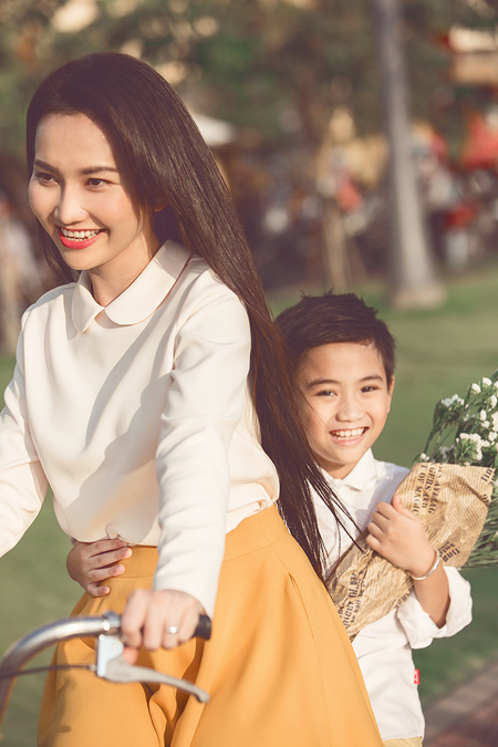 Nữ diễn viên Kim Hiền rạng rỡ bên con trai