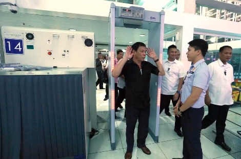 Tân Tổng thống Philippines Rodrigo Duterte cũng phải đi qua máy quét X-quang và dò kim loại ở sân bay Manila như những hành khách thông thường khác khi ông bay về quê nhà là thành phố Davao hôm 7/7.