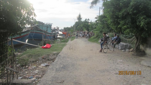 Thi thể cụ bà được đưa lên bờ bến sông Thai chờ người nhà nạn nhân đưa về quê an táng |