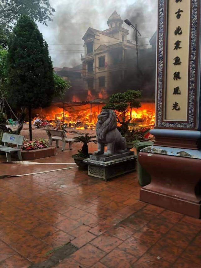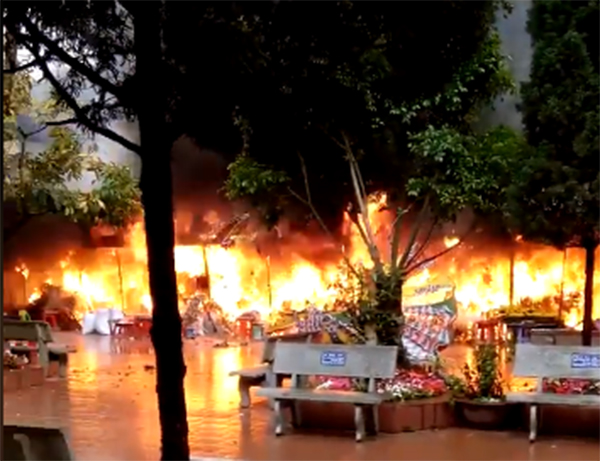 | Phía bên tay phải của khuôn viên là dãy ki ốt, quầy bán hàng mã- nơi rất dễ bắt lửa. |