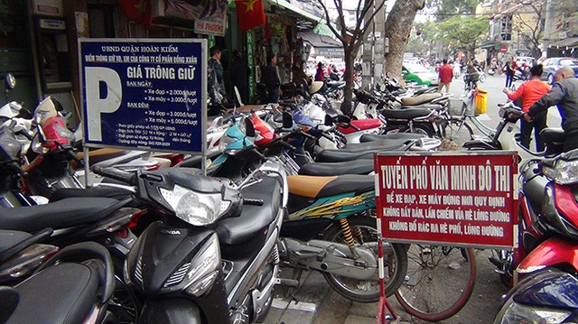 Cụ thể, hiện có nhiều bãi trông giữ xe ở xung quanh khu vực Hoàn Kiếm như trước cung thiếu nhi (đường Lý Thái Tổ), bãi đỗ xe đối diện 11 Hàng Gai,... phí trông xe máy với giá 5.000 đồng/lượt. Một số bãi trông xe khác như bãi đỗ ngay sau nhà bát giác tượng đài Lý Thái Tổ, bãi đỗ xe đối diện khách sạn Metropole... đều thu phí 10.000 đồng/lượt xe máy.