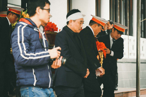 Nam diễn viên Quốc Khánh không giấu được sự đau buồn trong tang lễ. Ảnh internet |