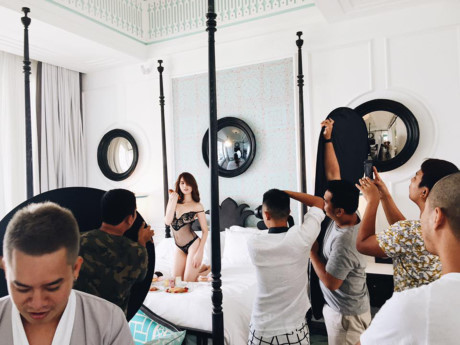 Loạt ảnh mới bị chỉ trích phản cảm của Ngọc Trinh. |