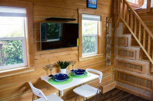 | Nội thất được trang trí rất ấm áp, không chỉ với ghế sofa thoải mái, còn có một bàn ăn nhỏ dành cho 2 người. Họ có thể vừa dùng bữa vừa thưởng thức phong cảnh qua cửa sổ. |