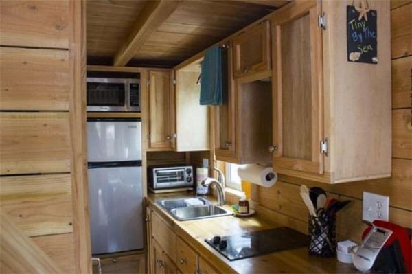 | Điều tuyệt vời nhất đó là mặc dù căn nhà rất nhỏ nhưng vẫn có cả gian bếp, bồn rửa, tủ lạnh, bếp gas… Tất cả mọi thứ đều rất đẹp và tinh tế tương ứng với không gian sống. Hơn nữa nó còn mang lại cảm giác hoàn hảo, thoải mái, ấm áp cho người sử dụng. |