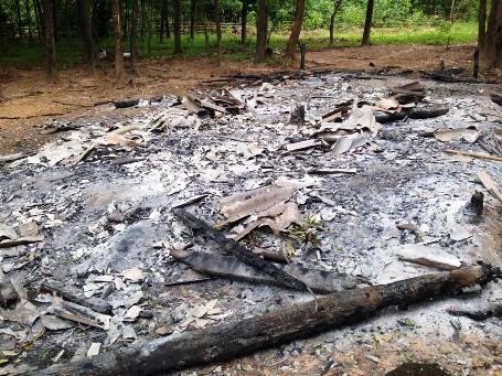 | Ngọn lửa đã thiêu rụi toàn bộ căn nhà của ông Hồ Tui. Ảnh nguồn: Infornet |