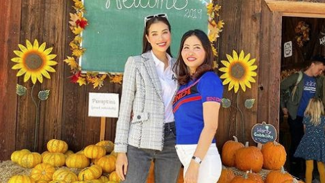 Phạm Hương vui vẻ đưa mẹ đi chơi Halloween trên đất Mỹ