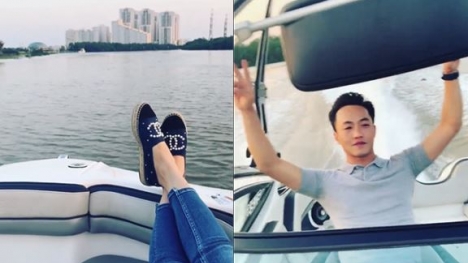 Hình ảnh Cường đô la lái ca-nô chở Đàm Thu Trang đi hóng gió khiến cư dân mạng không khỏi ngưỡng mộ.