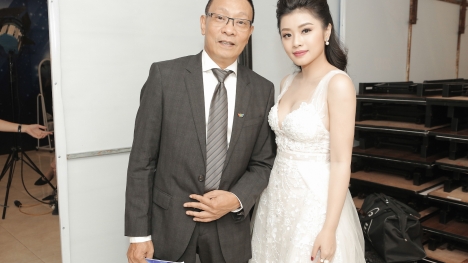 Sao mai Thu Hằng thân thiết với MC Lại Văn Sâm trong hậu trường