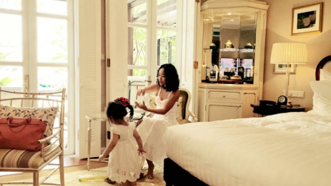 Vợ chồng Đoan Trang đưa công chúa nhỏ trở lại địa điểm trăng mật nhiều kỷ niệm, nhân dịp sinh nhật đôi của cả hai.