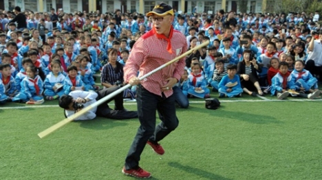 Mới đây, Lục Tiểu Linh Đồng đã có buổi giao lưu và tái hiện lại màn múa gậy của Tôn Ngộ Không cho các em học sinh.