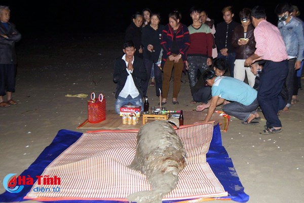 Sau khi quan sát thấy đây không phải loài cá bình thường, anh Thi đã thông báo cho người dân trong làng.Theo những ngư dân có kinh nghiệm đi biển, xác cá khủng trôi dạt vào bờ là cá Ông, còn gọi cá thần ở biển, vốn rất thân thiện với người dân đi biển và thường được người dân chôn cất, thờ cúng.