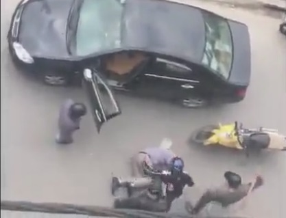 Lúc này, các đối tượng thay nhau đấm đá khiến nạn nhân nằm gục ngay tại chỗ rồi cả nhóm lên xe bỏ chạy.