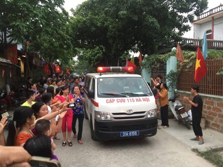 Khi xe cấp cứu đưa cụ Kình về đến thôn Hoành (xã Đồng Tâm, Mỹ Đức) vào 18h ngày 2/5, người dân đã đứng chật kín hai bên đường để reo hò, vỗ tay.