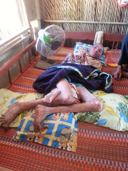 Đó là câu chuyện của anh Lâm Văn Sang (29 tuổi, ngụ ấp Vĩnh Thạnh B, xã Vĩnh Hải, thị xã Vĩnh Châu, tỉnh Sóc Trăng). Trong chín năm qua, anh phải sống trong cảnh bất động. Những người trong gia đình anh kể lại, hằng ngày, anh Sang vẫn ăn uống, nói chuyện bình thường, nhưng anh không đi lại được. Tay chân teo lại như những khúc xương khô. Cơ thể thì nổi vẩy, bong tróc giống như rắn lúc thay da vậy. Ông Lâm Mách (59 tuổi, cha của anh Sang) chia sẻ: “Cách đây chín năm, Sang là một thanh niên tròn 20 tuổi. Trong một lần đi bắt ốc, Sang có bắt được một con rắn hổ đất màu đen nặng khoảng 0,5kg. Thế là tối đó, Sang rủ thêm vài người thân trong nhà tổ chức nhậu.