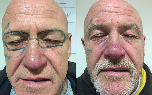 Khuôn mặt người đàn ông trước và sau khi xóa hình xăm. Ảnh nguồn: Telegraph |