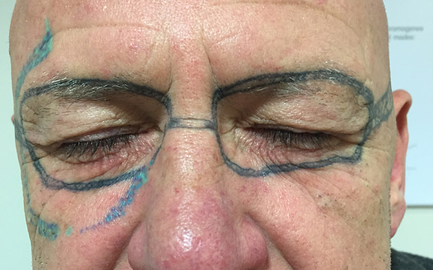 Một người đàn ông tỉnh dậy sau chầu nhậu say bí tỷ đã giật mình hoảng hốt khi phát hiện trên mặt mình xuất hiện hình xăm với hình dáng là cặp kính.