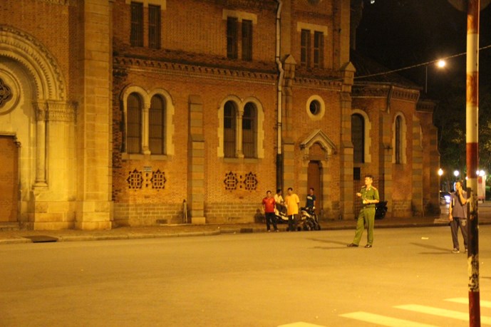 Cảnh sát phong tỏa truy bắt đối tượng đột nhập nhà thờ Đức Bà. Ảnh báo Thanh Niên |