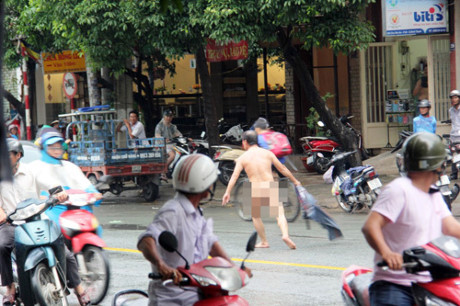 Một người đàn ông khoảng 50 tuổi lao từ quán nhậu ra giữa đường chặn các phương tiện giao thông trong tình trạng không mảnh vải che thân.